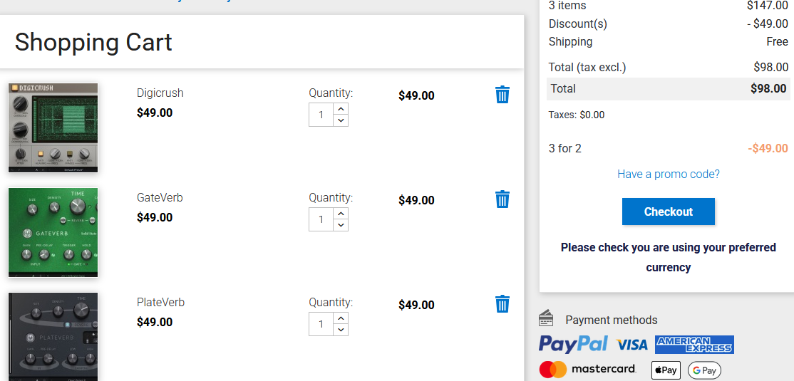 Видимо тут тоже не продумали, ведь три плагина стоят 49+99+99 по отдельности... -247$