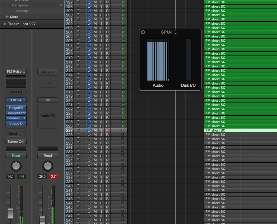 Получилось 737 треков и примерно половина из них виртуальные инструменты и на каждом треке по несколько плагинов.