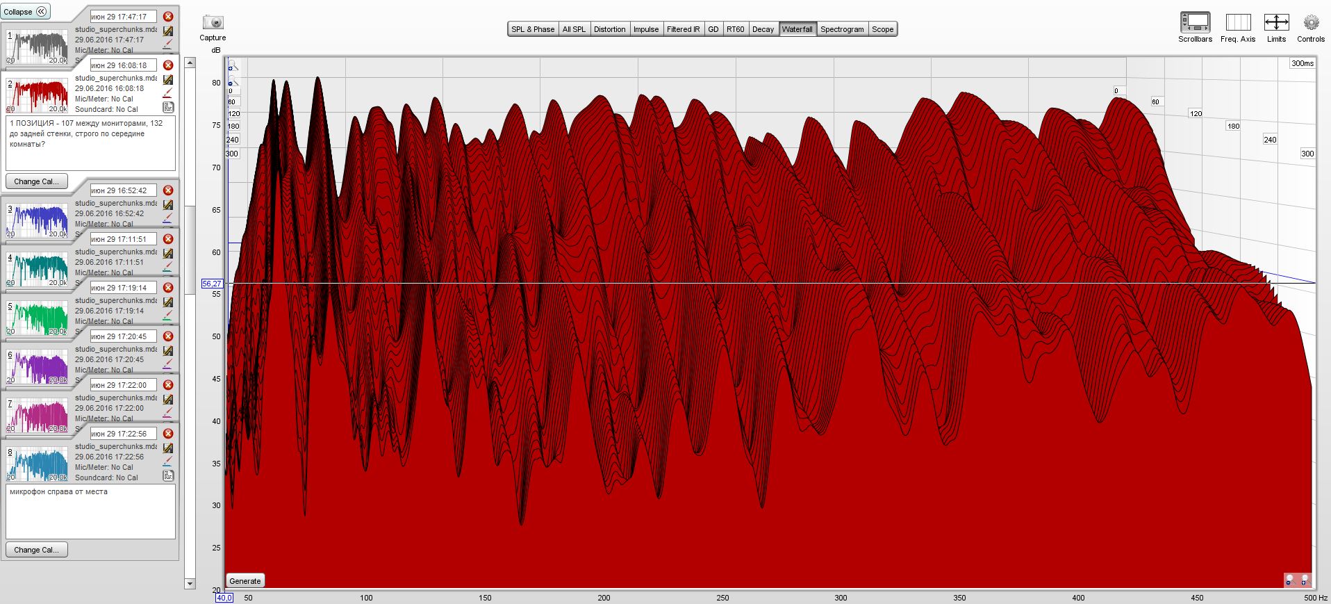 1. По графикам АЧХ я вижу что есть 3 выраженных провала провала , но мне не понятно - получается что в зависимости от расположения рабочего места, провалы меняются, особенно это видно на 2 и 3 провалах. О чем говорят нам эти графики? Я так понимаю значения провалов разнятся потому что меняется расстояние от динамиков до стены, в данном случае передней и задней. По сути это же SBIR эффект?