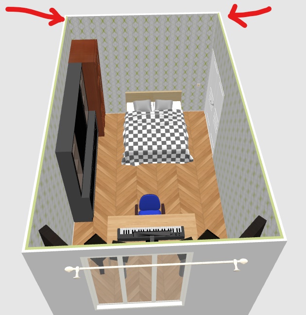 Если с углами передней стены нет проблем - туда панели до потолка поставлю. То в углы задней стены я не могу поставить панели, т.к к одному углу примыкает входная дверь в комнату. Прям в углу она. В другой угол упирается тот самый шкаф (набитый книгами, одеждой, одеялами и т.д.)...