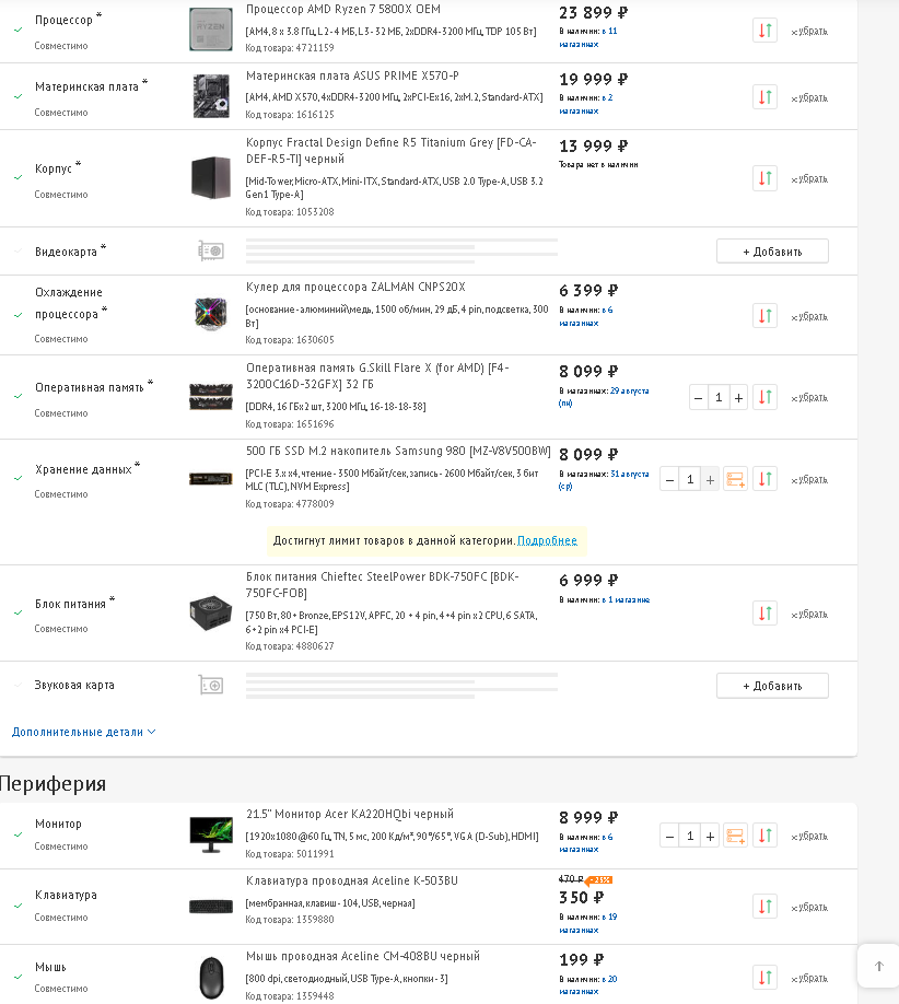 Я пока собрал так(вложение), где бюджет превышает. И это цены за нал. У меня предполагается безнал. Видимо там цены другие будут?