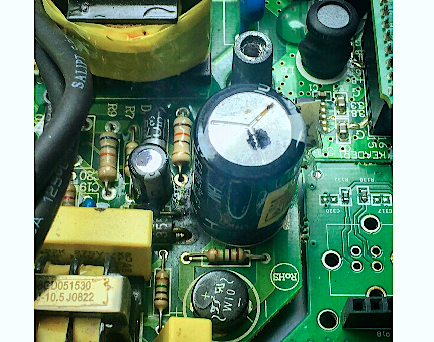 Скинул крышки корпуса, посмотрел, на вид явно проблемы не заметил, решил отдать в сервис. Отвез в СЦ докторсаунд, оставил на диагностику. Сообщили, что нужно поменять катушку индуктивности и пару диодов - ремонт расценили в 6+т.р., после «разговора» сделали скидку и получилась кругленькая сумма 5223р, что как то показалось очень странным, да и совсем не совпадало с финансовыми планами. В общем, карту забрал как есть, с выпаянной индуктивностью и парой диодов. Тщательный осмотр показал неаккуратно перерезанную дорожку и пару крайне криво припаянных керамических конденсаторов, которые видимо снимались для диагностики (?), вся плата заляпана флюсом и от нее уже явственно пахло смертью )).