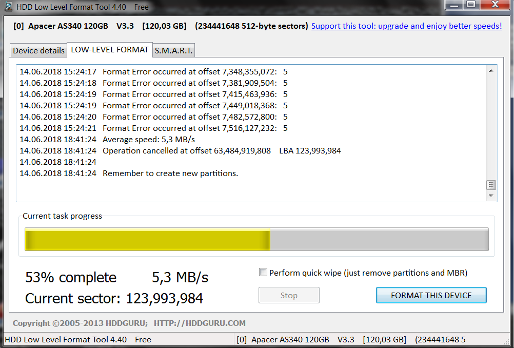 Ребята привет, есть проблема с ssd диском, покупал 2 месяца назад, Apacer 120 гб. Устанавливал на него mac os x,для теста, и windows 7.Форматировал его раза 10, с ntfs в fat 32 и обратно. Так как устанавливал на него две системы,мак и винду. Последняя была винда семерка, после экрана смерти, она перестала загружаться. Подключал к другому компу, виндовс не видит ссд. Пробовал удалять раздел, форматировать диск, прогами Partation,Paragon,Acronics.безрезультатно, все выдают ошибку, перезагрузите компьютер.. После решил накатить винду,думал что при установки диск форматнет,но при форматировании, выдал ошибку x80300024.ССД проверял разделы, все нормально, состояние хорошее. Что может быть с ним, приехал? И проги которые показывают его состояние, это фуфло? SSDLIFE,CRYSTALDISK.Дополнение, перед установкой винды, пробовал чистить c помощью команды diskpart,не помогло. Отсоединял все жесткие диски, обновил биос, сбросил биос сняв батарейку, не помогло.Есть скрины ,может они помогут разобраться.