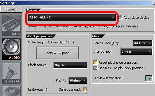 Devices- Device Setup - VST Audio System