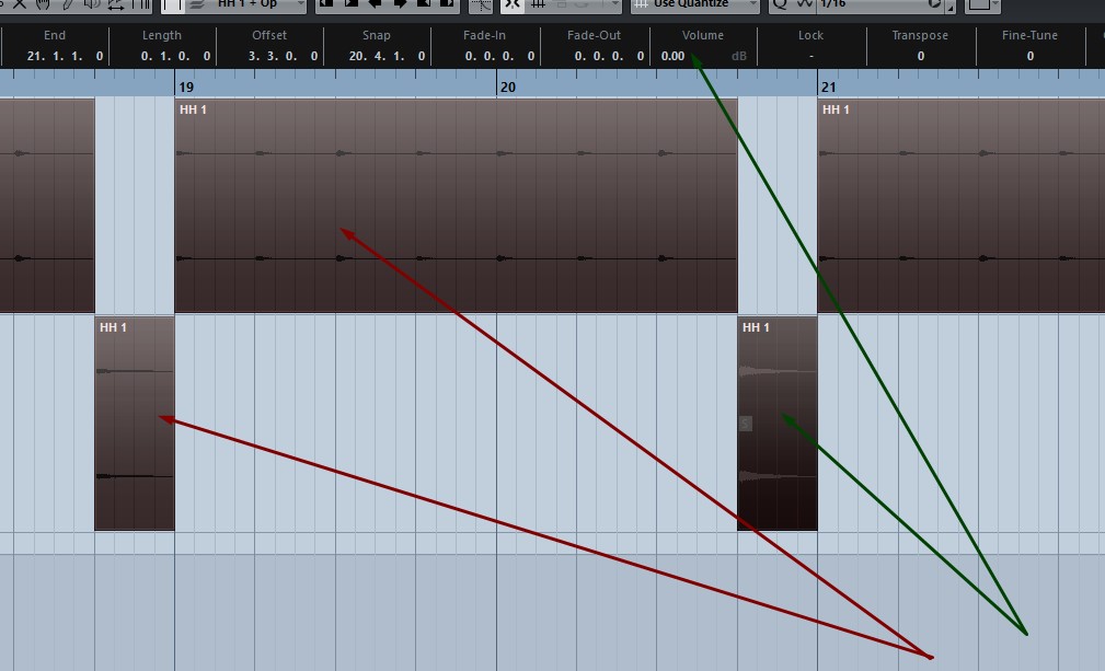 На каком то этапе обновления, упустил такой момент: при работе с аудио-частью (Events to Part), раньше приоритет был у нижнего куска семпла, т.е., если его мьютил, открывался, на ступень выше. Теперь же, делаю мьют, а верхний не открывается, не звучит. Раньше, звучал. Может по-умолчанию раньше так стояло, я и не задумывался. Растолкуйте пожалуйста, не могу понять принцип. Прилагаю картинку.
