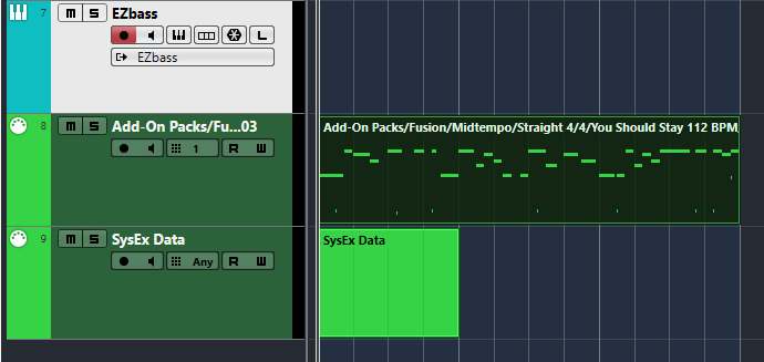 SysEx не создается отдельно, но они скорее прописаны прямо в этом канале. Грув понятия для ДАВ тоже не существует, есть только стандарт миди