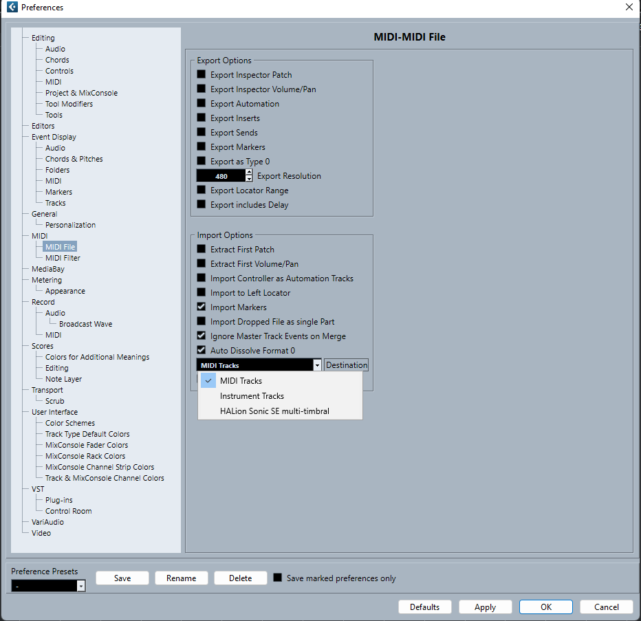 Не могу найти где это отключить.При перетаскивании миди файла на трек vsti,дополнительно создаются другие миди дорожки.