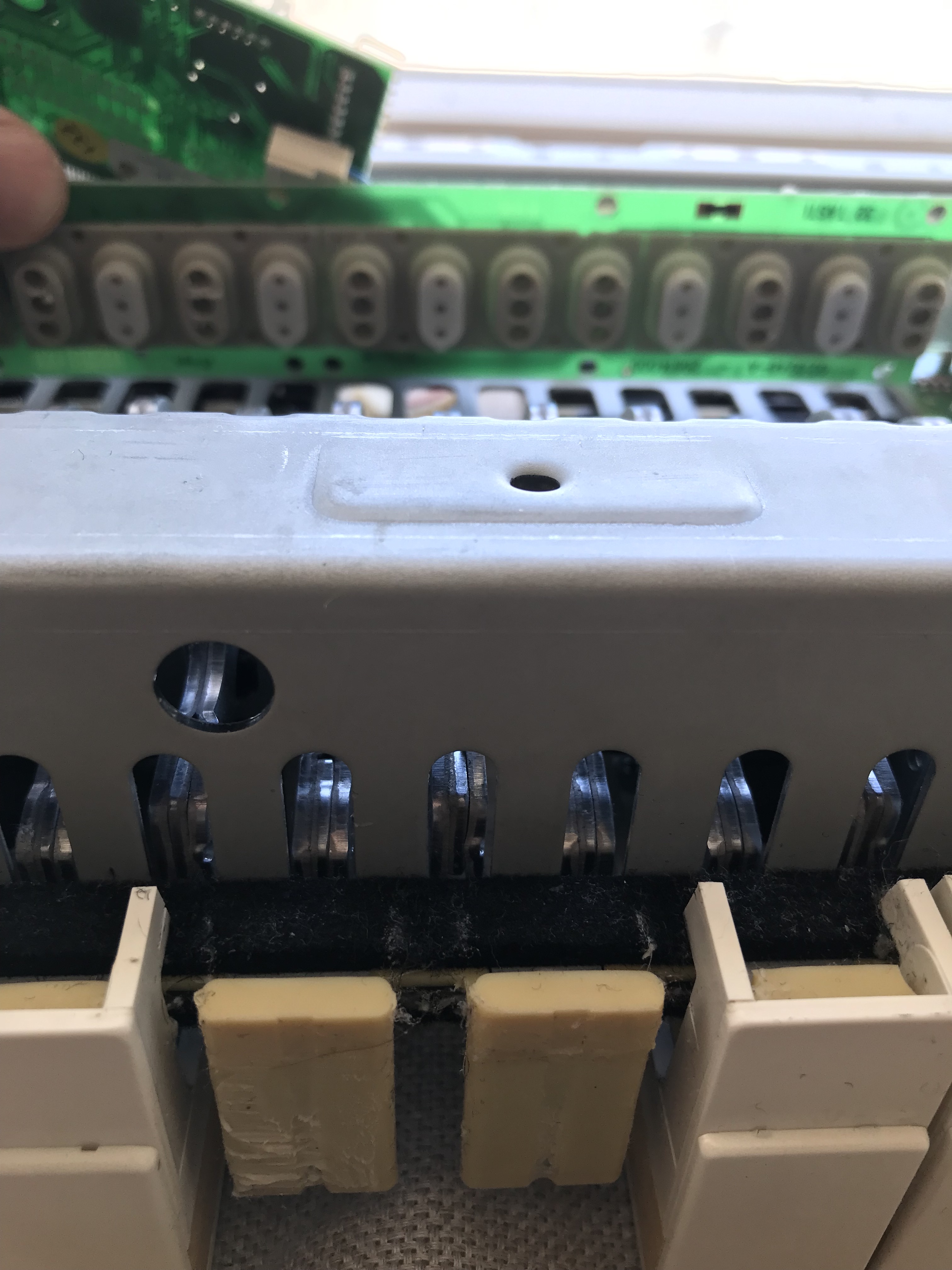 Поменял резинки в SL88 GRAND, и после сборки перестал работать блок клавиш начиная с До первой октавы и заканчивая Ре-диез второй (ровненько 16 нот). Разобрал, подергал контакты, собрал. Ничего не изменилось. Все остальное выглядит вполне работоспособным. Буду признателен за идеи, что могло отвалиться или сломаться.