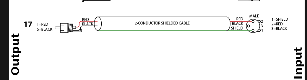Оттуда идут TRS-RCA. Понятное дело, что балансным оно быть не может. От саба RCA - XLR, распаянные по вот такой схеме