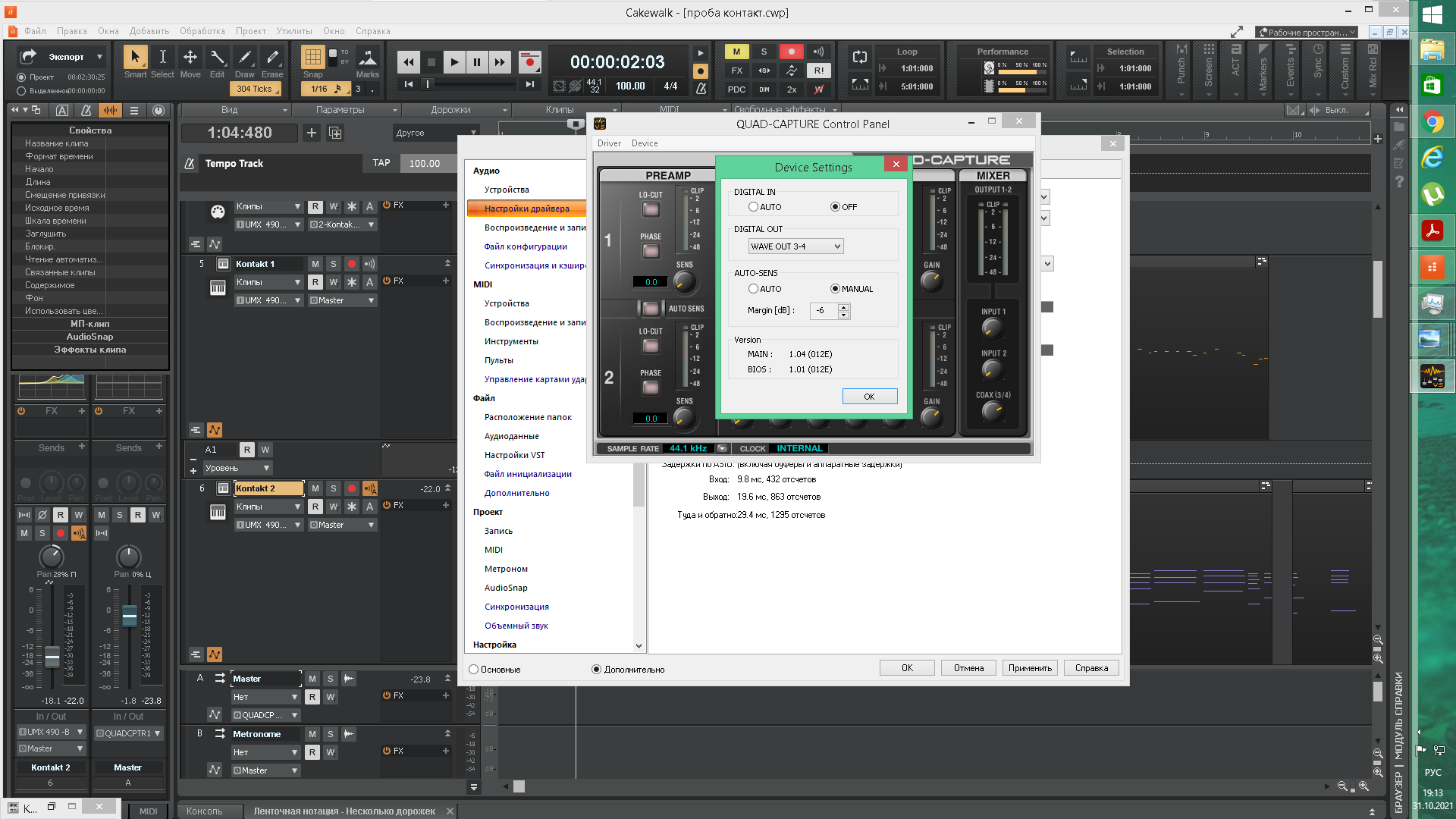 Ребята, помогите! интерфейс Roland Quad-Capture подключил к cakewalk by bandlab вход и выход 1 и 2, всё работает ( пишу только с миди клавиатуры ) Пробовал вход и выход 3 и 4, сигнал с мидиклавиатуры идёт, а звука нет. Скриншоты прилагаю. ( Эти установки на 1 и 2 выход, на 3 и 4 переключал с OFF на AUTO ).