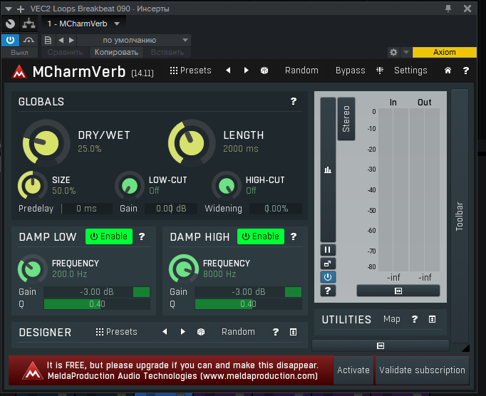 Мельда обновил свой фри набор. Теперь и интерфейс классный стал. И добавили новый алго реверб, очень забавный. Очень крутая плотность отражений, верх круто репродуктирует, как аир ревер буду юзать теперь его)