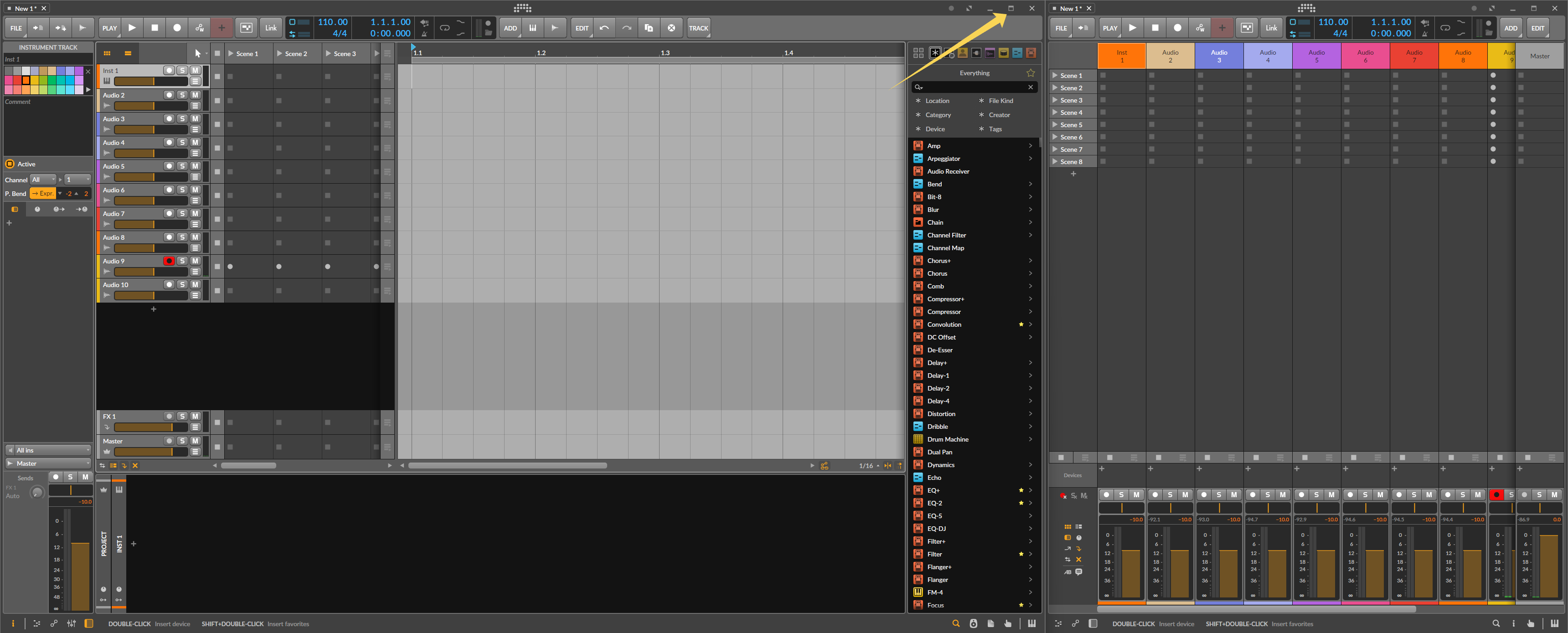 Всем привет! Не могу разобраться с поведением битвига при записи. Работаю с окном аранжировки, в клип лаунчере ничего активного нет. На дорожке String Pad 2 прописан миди клип с одной нотой. Перед инструментом стоит миди-плагин, который из одной ноты делает аккорд. Я хочу записать миди клип с этим аккордом. Для этого создаю новую дорожку Inst 10 и коммутирую на ее вход выход с миди плагина, создающего аккорд на дорожке String Pad 2. Активирую запись на дорожке Inst 10, а затем активирую и запускаю запись на панели транспорта. На дорожке Inst 10 действительно записывается аккорд, как я и хотел. Но при этом почему то битвиг и все остальные дорожки окна аранжировки начинает перезаписывать информацией из клип лаунчера. Сейчас там ничего не активно, и он записывает пустоту. Получается как на нижнем скрине. Если же активировать клипы в лаунчере он ими будет перезаписывать клипы в аранжировке. И это на всех дорожках. А для записи то помечена только одна. Я не понимаю, как сделать, чтобы запись шла только на одной дорожке?
