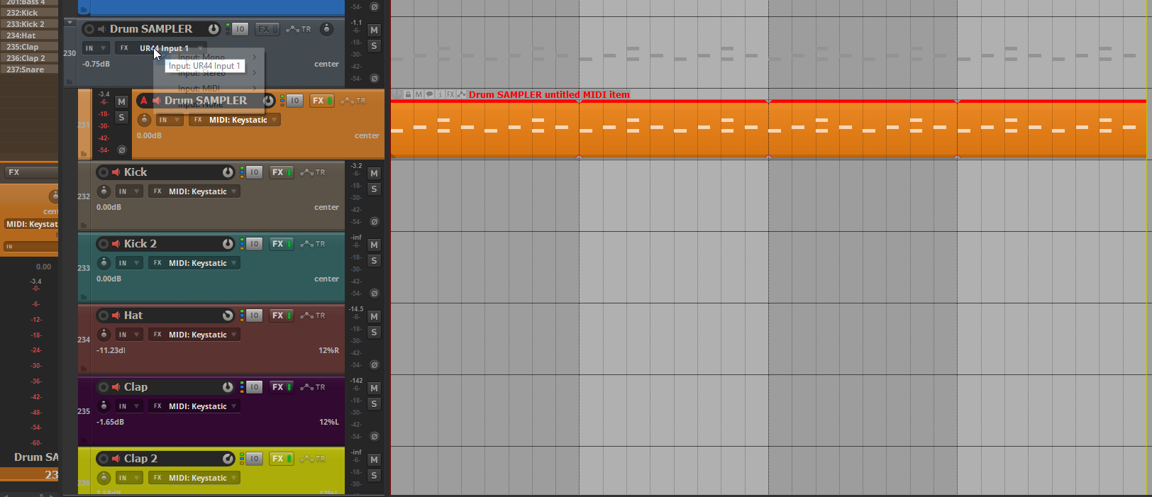 А какой семплер стоит при этом в инсерте? Можно каждый ван шот выводить на свою дорожку и делайте с ним что хотитеНо, есть большое но, при проигрывании в рипере, у меня играет лишь только одна дорожка.