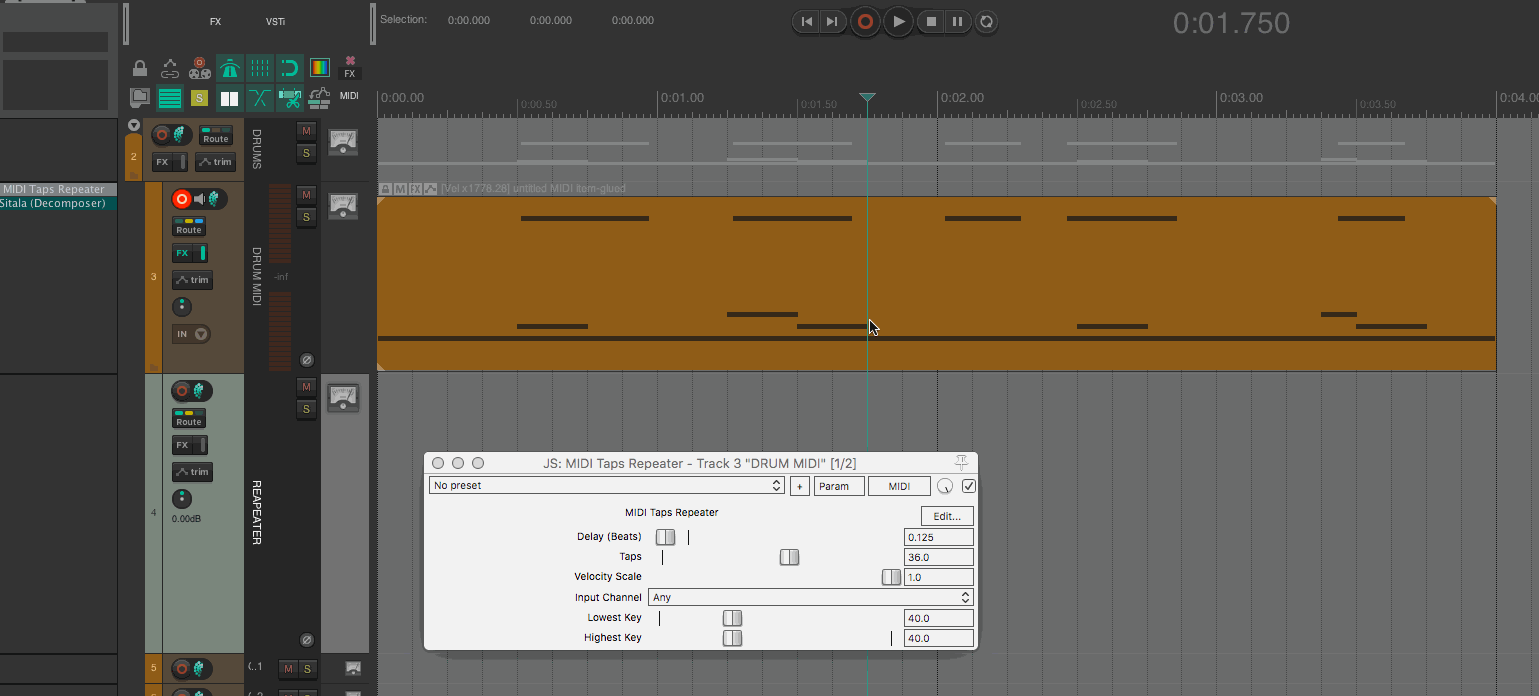 Как реализовать в Рипере note repeat? Например: прописал миди партию ударных одним треком, использовал Sitala. Потом мне надо в режиме overdub прописать фрагменты хета 16-ми или 32-ми.
