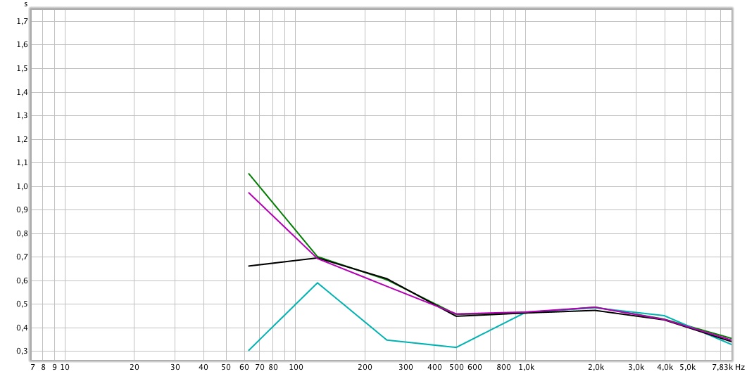 @Dmytro_ua, спасибо! Буду придерживаться этой последовательности. Даже сейчас на правом мониторе убрав встроенным параметрическим эквалайзеров горб в районе 57 Гц бас перестал гудеть, заметно очень на слух. А по RT60 видно есть с чем бороться - нижний бас гудит до 1 сек. Исправить бы до 0,4-0,5мсек.