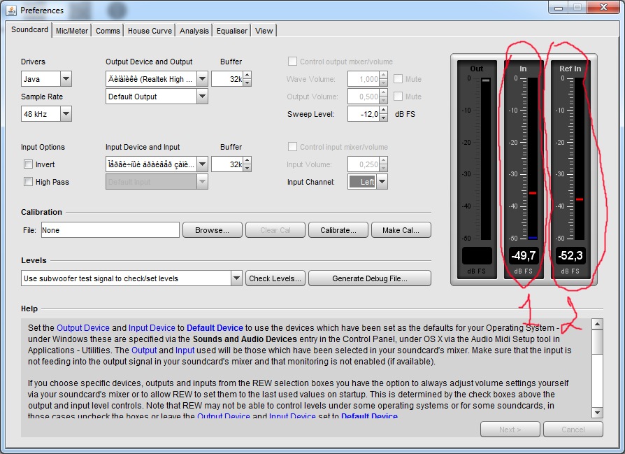 Понял, спасибо большое. Но, "В настройках карты выставить каналы для реф сигнала" это как? , галочку поставил, теперь в полях выбора устройств еще должны появиться устройства? Или как на рисунке , разница между In(1) и InRef(2) правильно настроено, что in показывает уровень с микрофона а InRef не меняется и измеряется разница между ними?