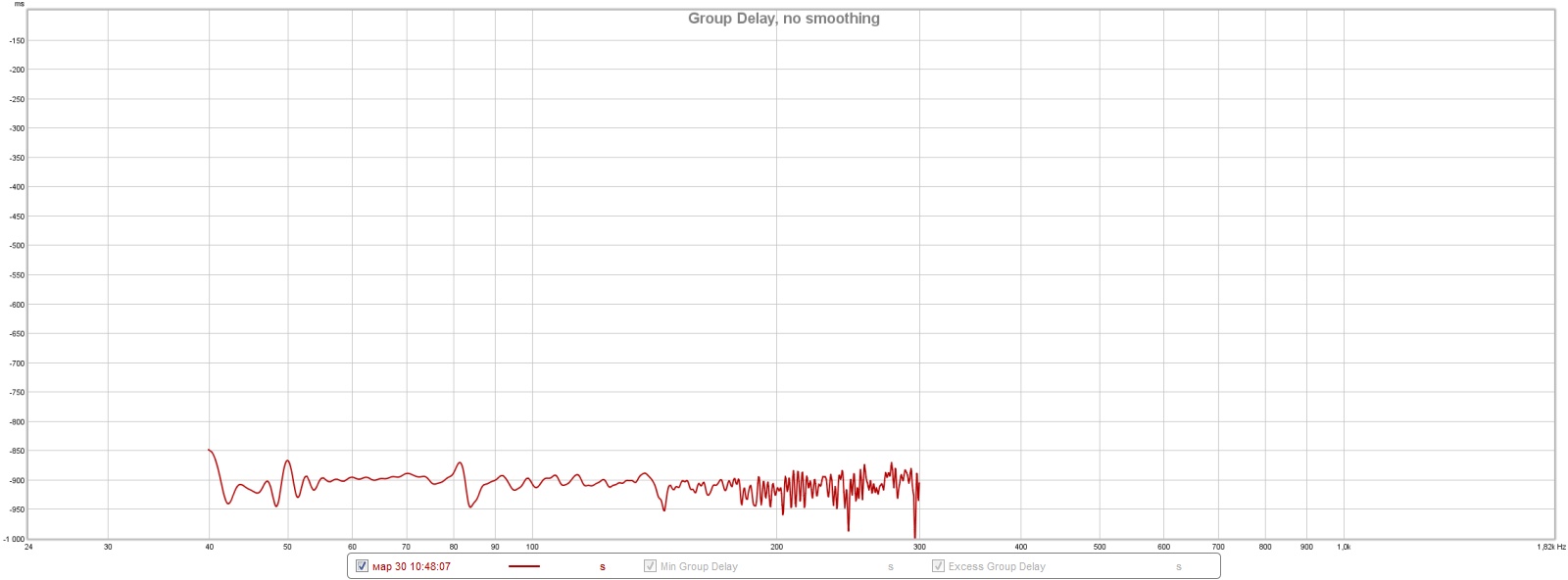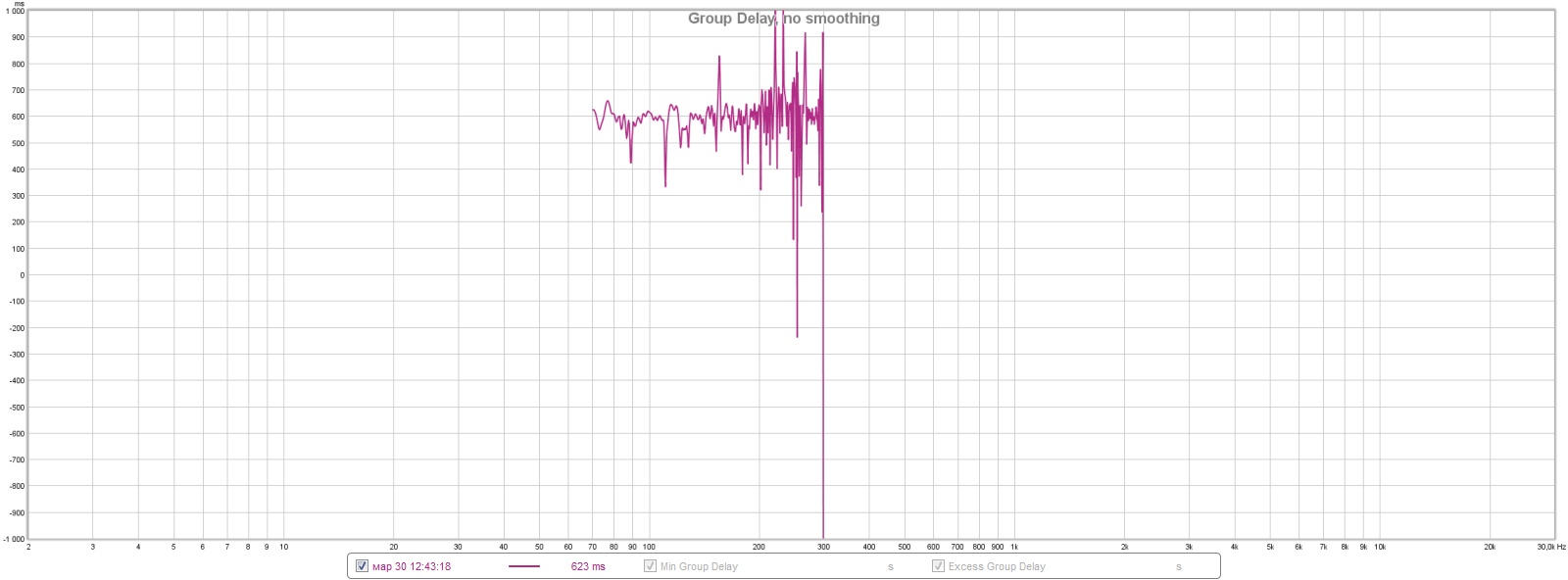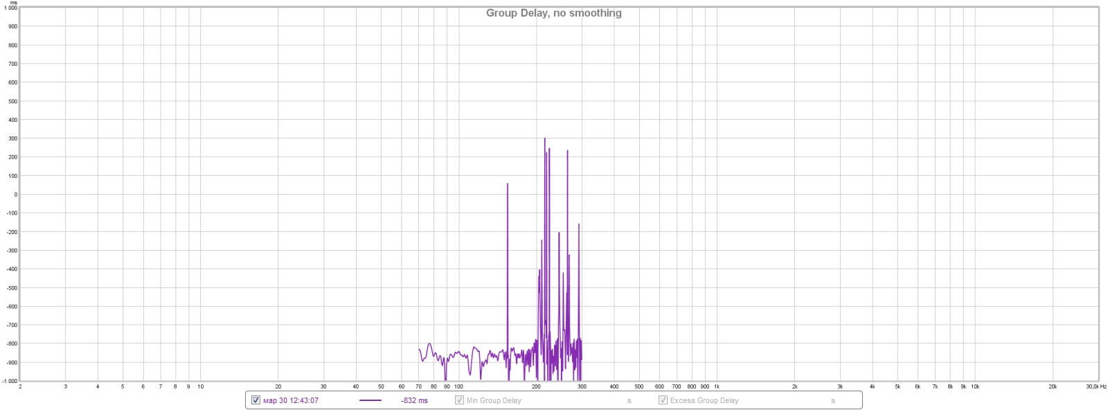 в group delay меняется время появления сигнала. Но как-то странно. первый замер показывает -931 мс(как это вообще минус, ну да ладно), второй -832 мс. третий почему-то вообще резко +623 мс. Или не то смотрю....