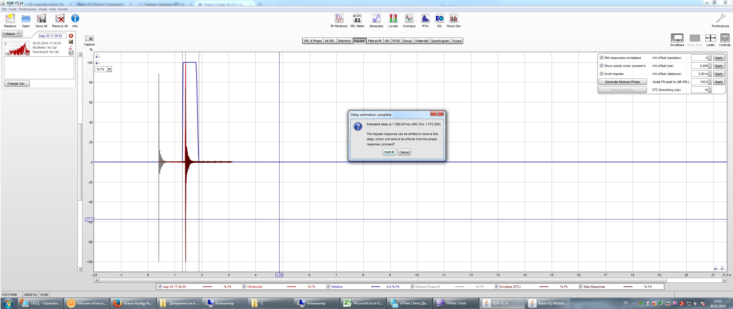 [DOUBLEPOST=1459341392][/DOUBLEPOST]В плане замера задержек, не все так просто. вот тут на ветке это обсуждают http://www.hometheatershack.com/forums/rew-forum/76226-umik-1-timing-reference-phase.html