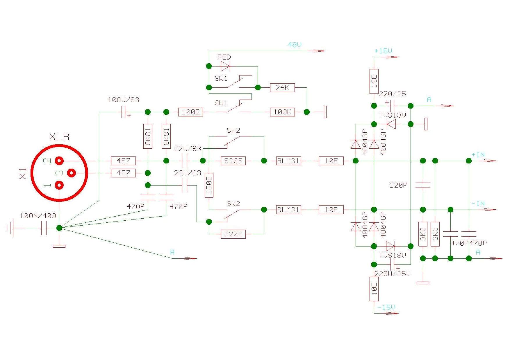 -не преамп тоже к этому же фильтру, по уму туда еще tvs на 18в надо ставить , но и большой емкости хватает вполнеЮра говорит о том, что диоды надо подключать не прямо к шине питания, а к описанному им RC-фильтру - а сам преамп, как питался - так и питается...